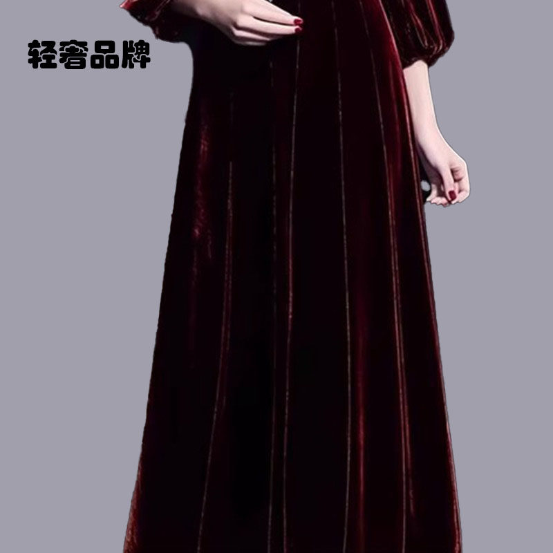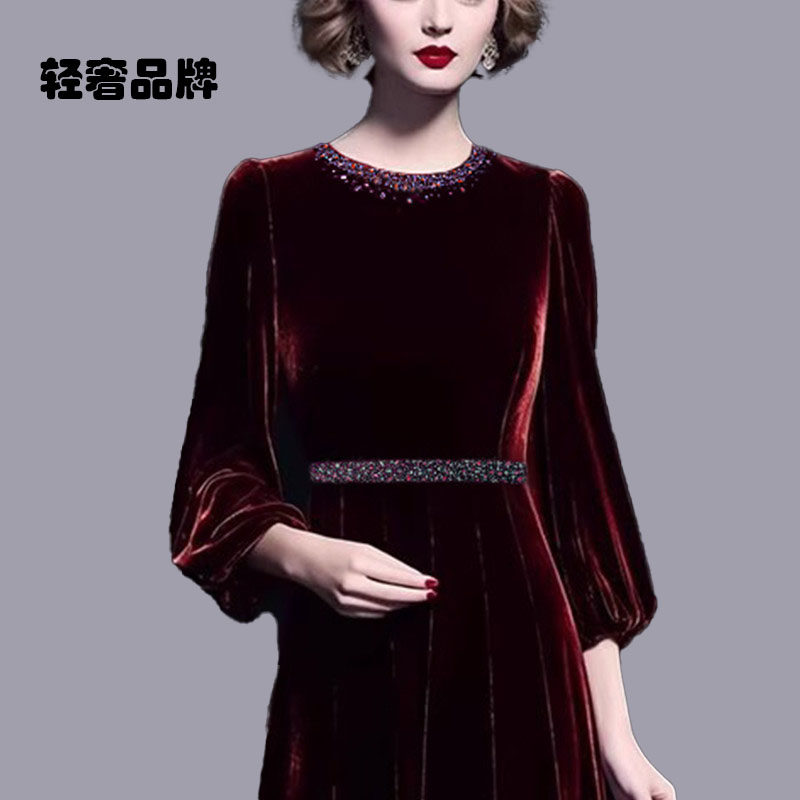 大码 高端奢华中长款 欧货裙 复古连衣裙2026秋新款 朗姿约定丝绒法式