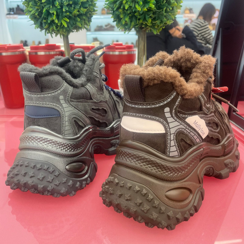 2025新款 MOLLY 厚底高帮鞋 莫丽爱 真皮皮面透气运动休闲绒靴 LOVE