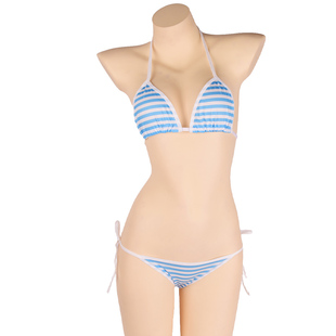性感内衣三角条纹分体三点式 女日系沙滩运动系带游泳衣 比基尼套装