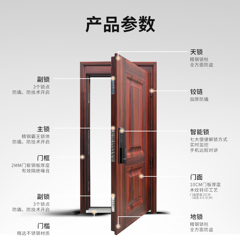 防盗门甲级家用内外双色带指纹锁一体智能密码 子母门入户门进户门