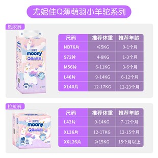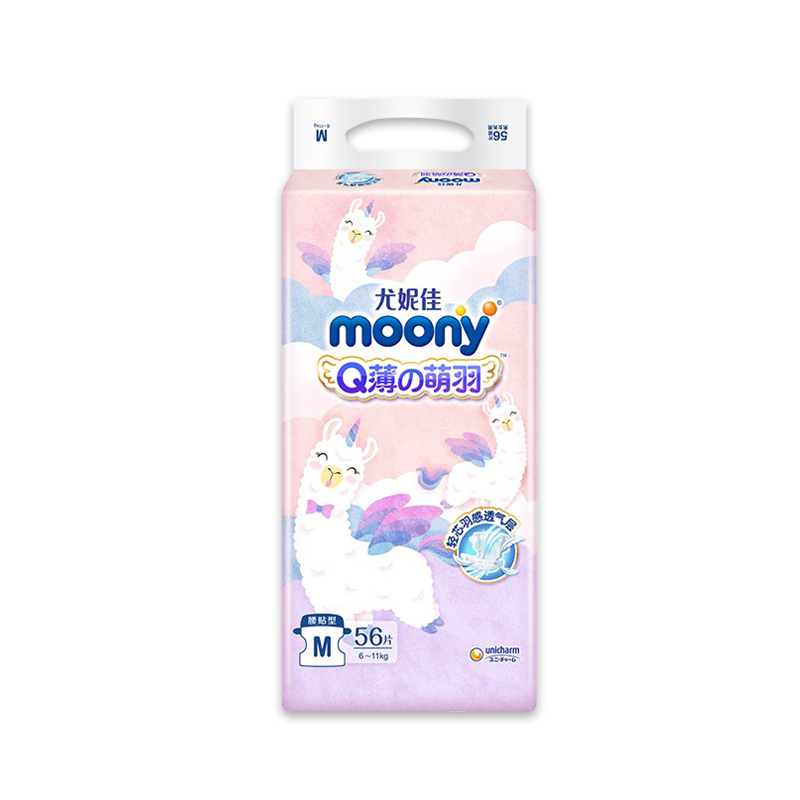尤妮佳moonyQ薄萌羽小羊驼纸尿裤 腰贴型婴儿尿不湿超薄透气M56片