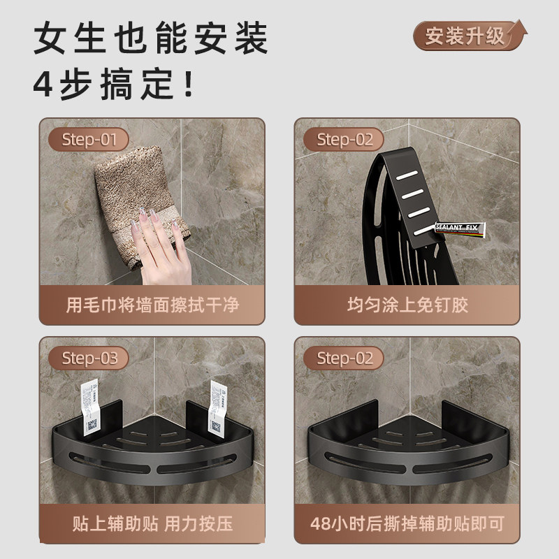 卫生间浴室三角置物架洗手间洗澡放沐浴露洗发水 收纳架子免打孔