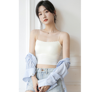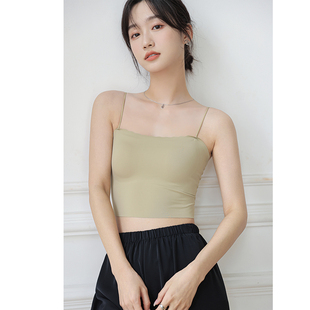 无痕冰丝美背吊带背心女夏带胸垫内搭外穿打底内衣黑白色抹胸上衣