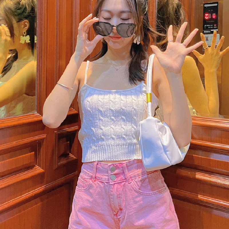 bm风纯色内搭外穿上衣背心女潮 麻花针织吊带衫 Brandy Girl新款