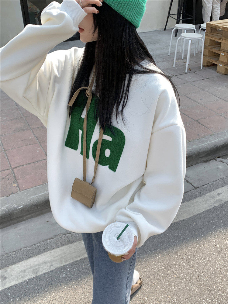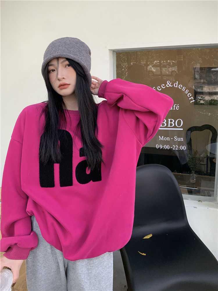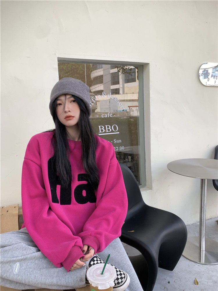 oversize宽松圆领套头韩系上衣 加绒卫衣女2025秋冬款 美式 情侣装
