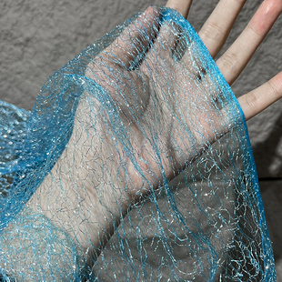 传闻蓝银色柔软网纱布料镂空婚纱礼服装 设计师面料改造 饰背景服装