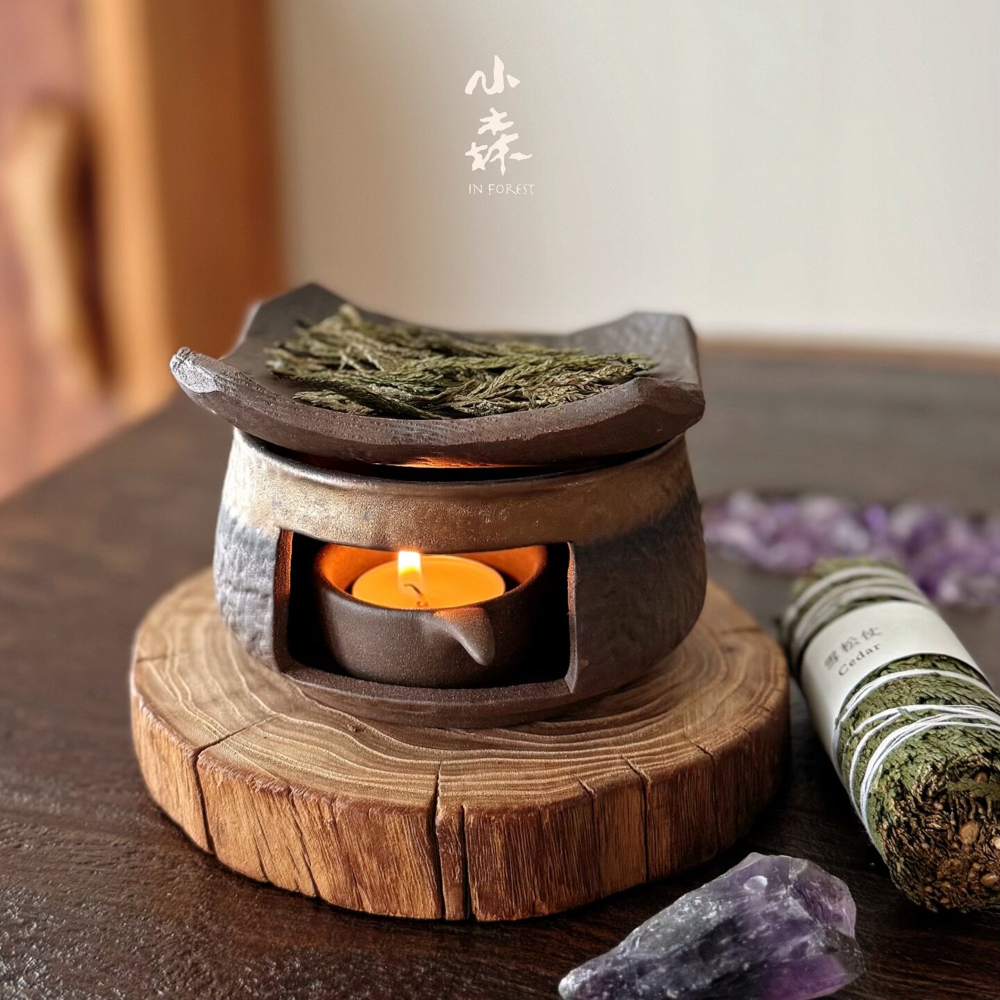 小森之家手作日式 烘烤炉陶瓷熏香植物雪松香薰炉烤茶炉桌面摆件
