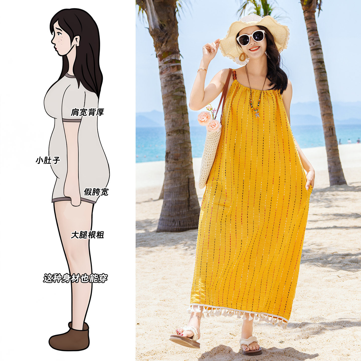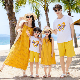 海南三亚海边度假波西米亚连衣裙一裙一衣 t恤套装 沙滩情侣装 夏季