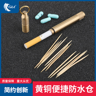 黄铜牙签筒密封防水仓创意便携香烟型迷你收纳盒户外储物罐牙签盒