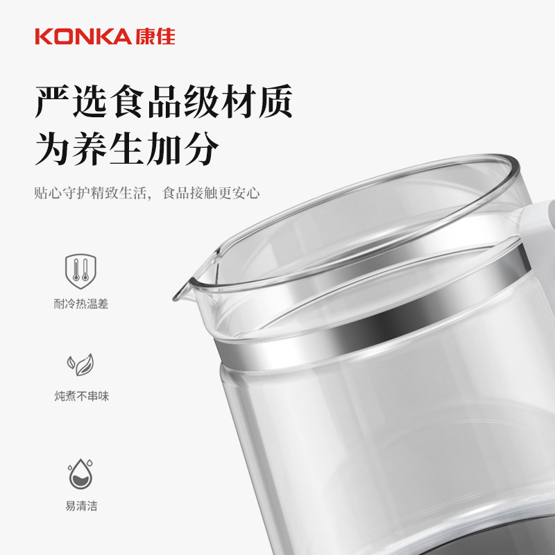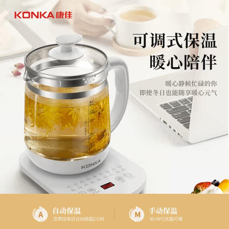 康佳养生壶电水壶花茶壶煮茶器水果茶银耳羹玻璃花茶烧水壶1.8L