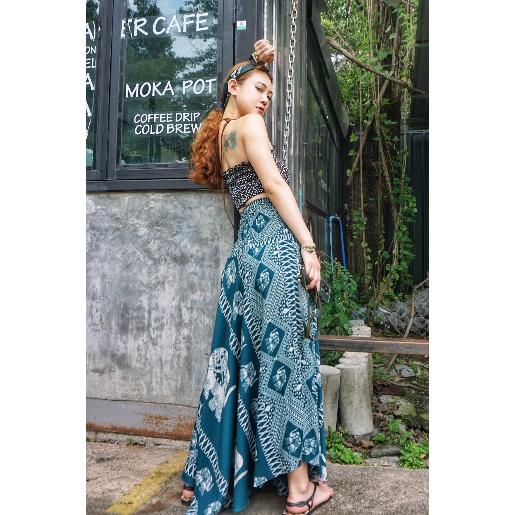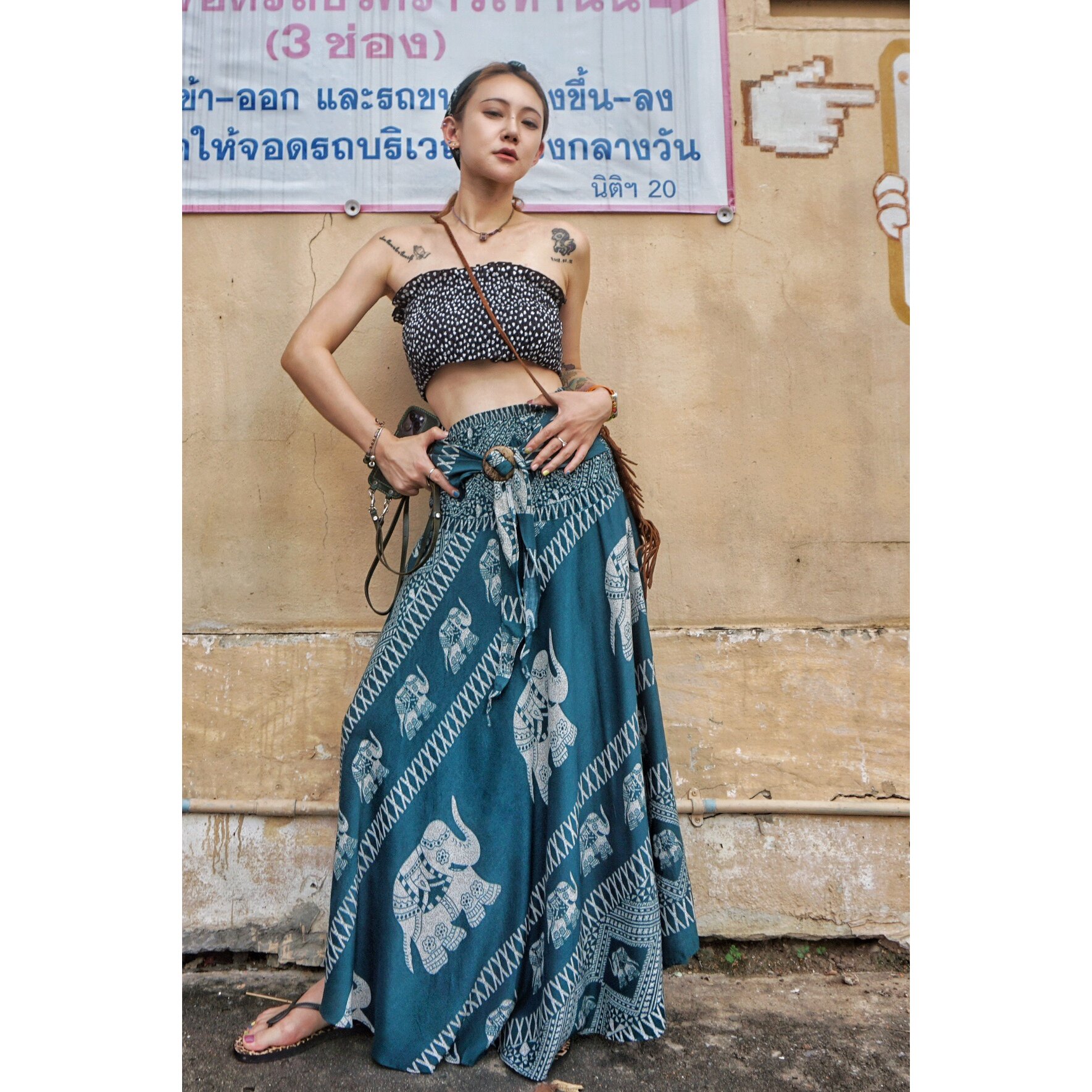 罗大娘泰国人棉大象半身裙高腰大摆裙波西米亚民族风沙滩长裙度假