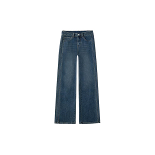 胖mm宽松显瘦梨型身材长裤 加绒加厚大码 子 女冬季 复古蓝微喇牛仔裤