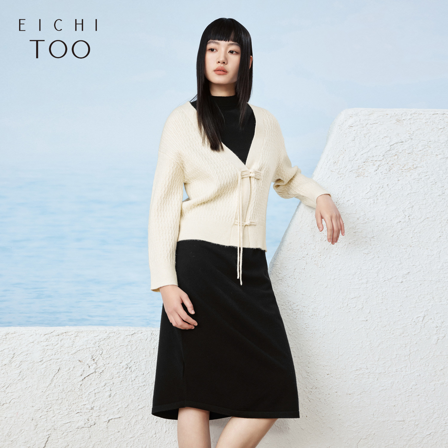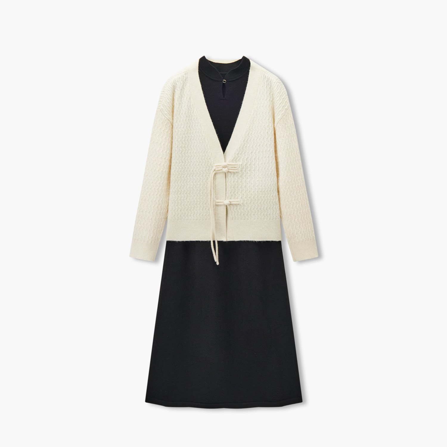 文艺盘扣连衣裙女2025年秋季 装 新款 针织衫 套裙 两件式 爱居兔新中式