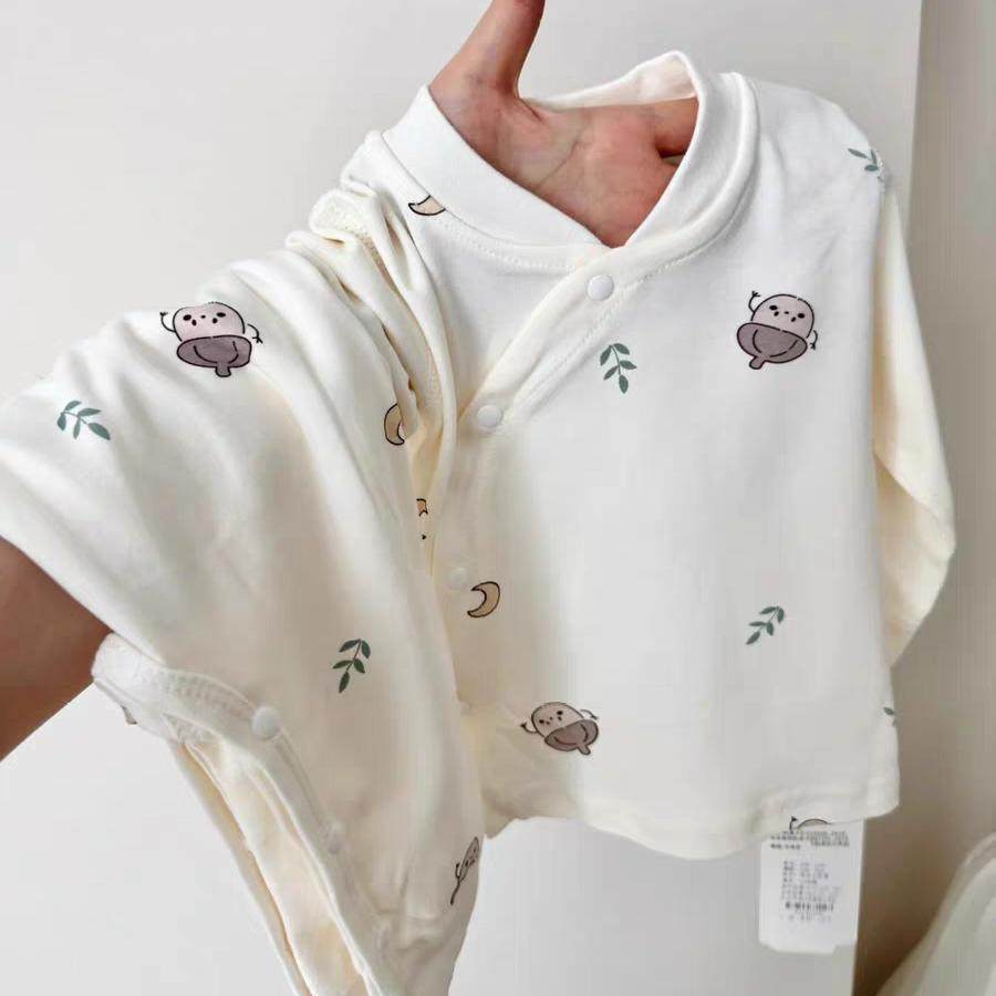 婴儿秋衣秋裤 新生儿内衣套无骨纯棉宝宝分体哈衣秋冬打底 分体套装