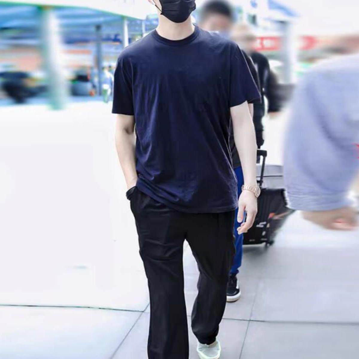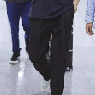裤 欧货高端黑色西裤 子休闲西服西装 松紧调节扣裤 潮 男宽松直筒长裤