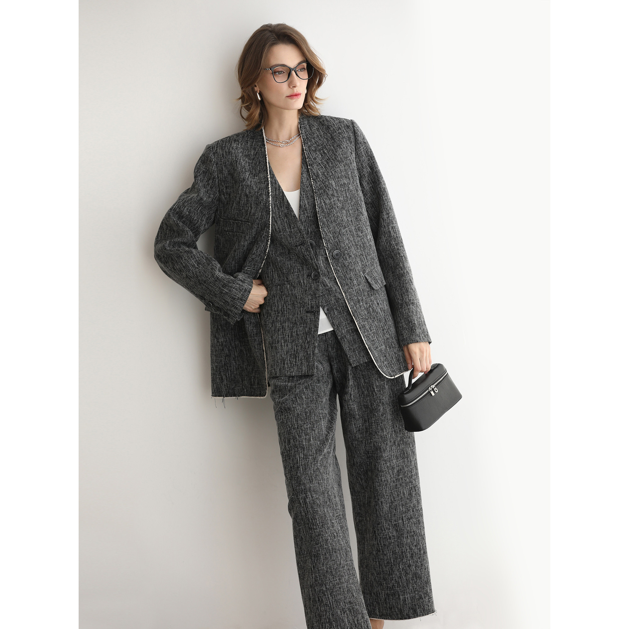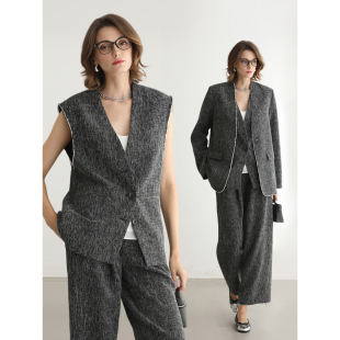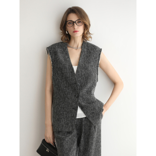 COCOBELLA轻奢撞色镶边毛边马夹女春通勤休闲无领西装 马甲WS3010