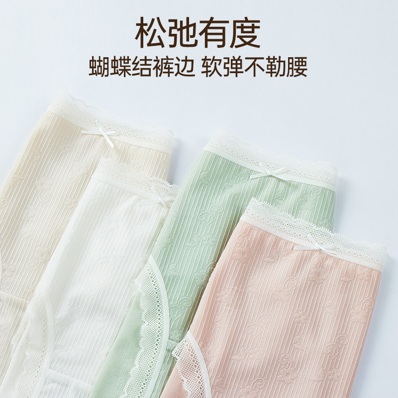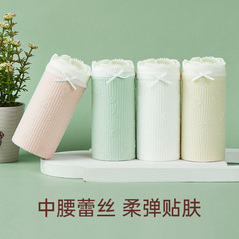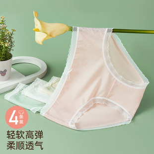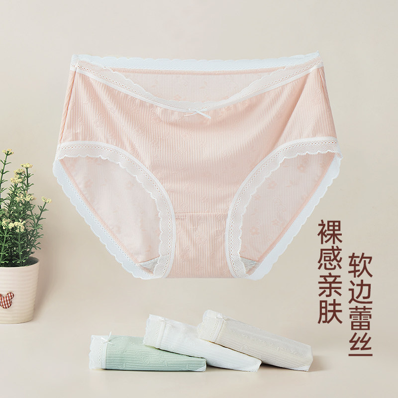 内裤 女大码 舒适轻薄透气 全棉底裆抑菌蕾丝花边中腰三角裤 女士内裤