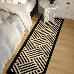 美式 复古床边地毯卧室地垫客厅高级感长条加厚仿羊毛房间床边脚垫