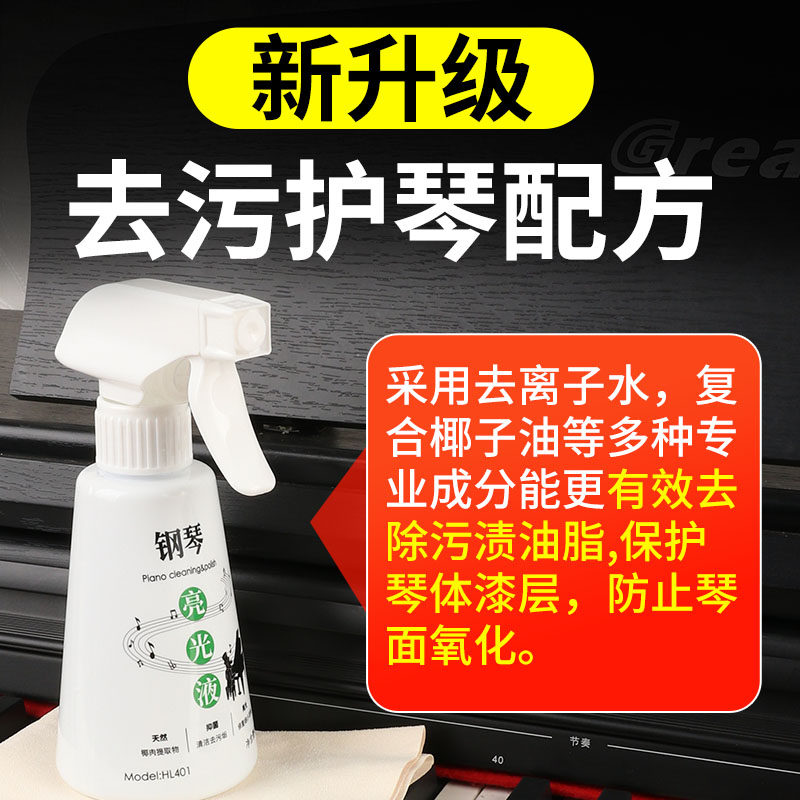 钢琴清洁剂亮光液保养剂护理液清洗剂神器打蜡套装 琴键抛光擦琴布