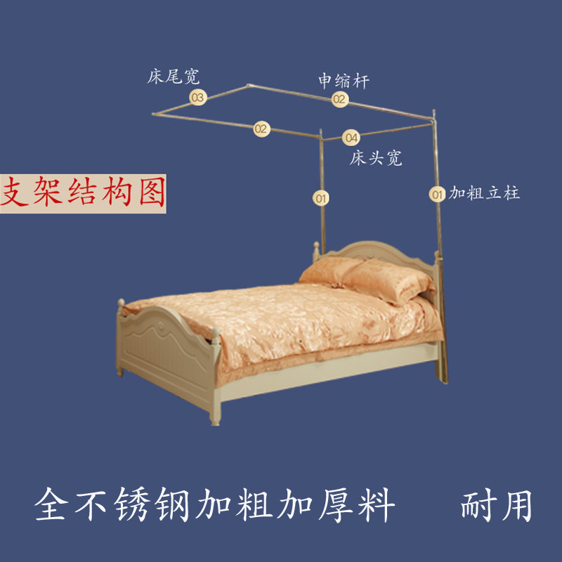 蚊帐不锈钢加厚加粗伸缩方顶宫廷落地压脚1.5米1.8M不打墙免安装