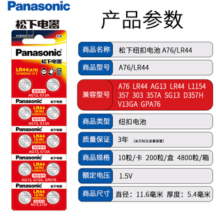 松下LR44纽扣电池AG13 A76手表玩具遥控器游标卡尺碱性357a L1154