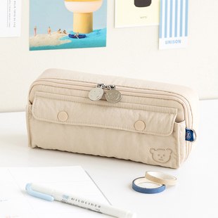 韩国Romane搭扣防水大容量笔袋男女简约拉链学生文具铅笔盒化妆包
