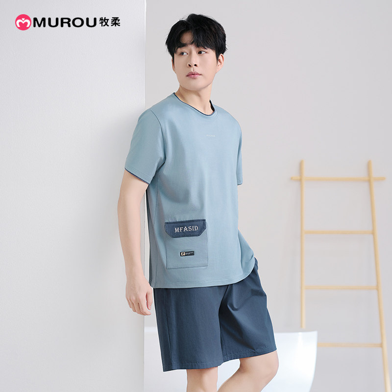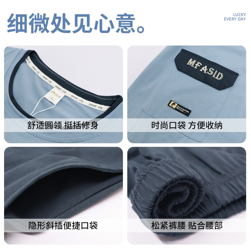 家居服套装 长袖 柔软春秋透气阳光棉睡衣男女 开衫 松山棉店棉柔男士
