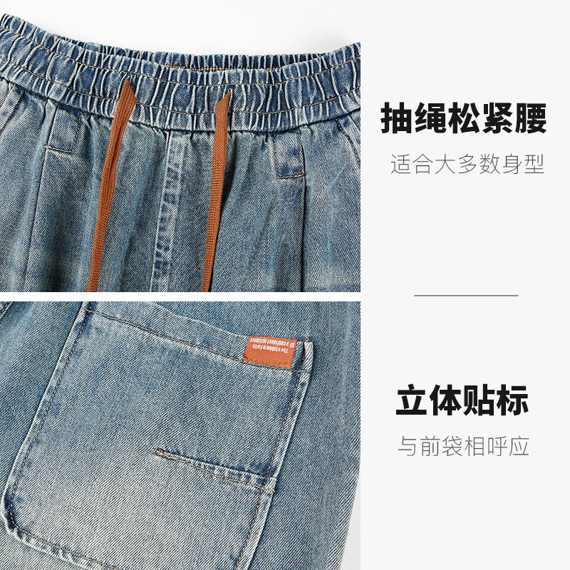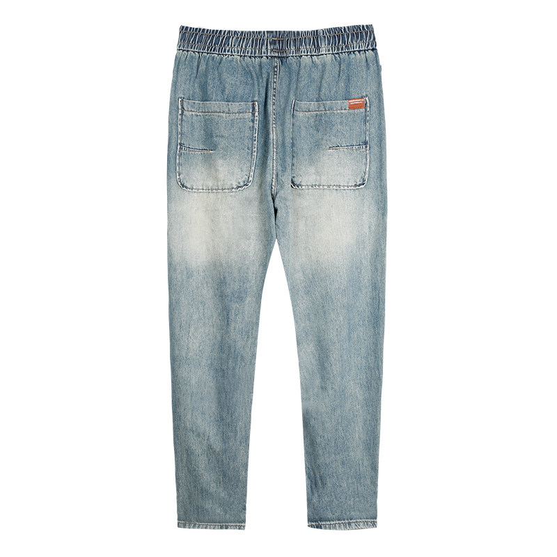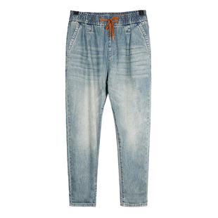 新款 男2024夏季 修身 薄款 潮 才子男装 复古水洗长裤 纯棉松紧腰牛仔裤