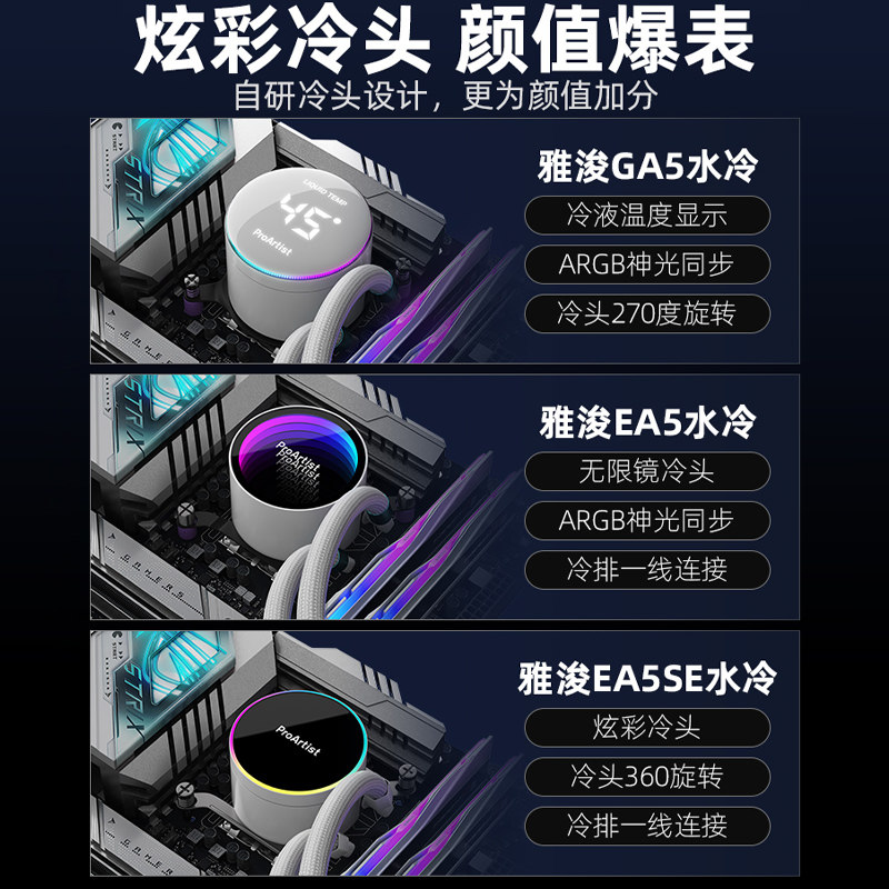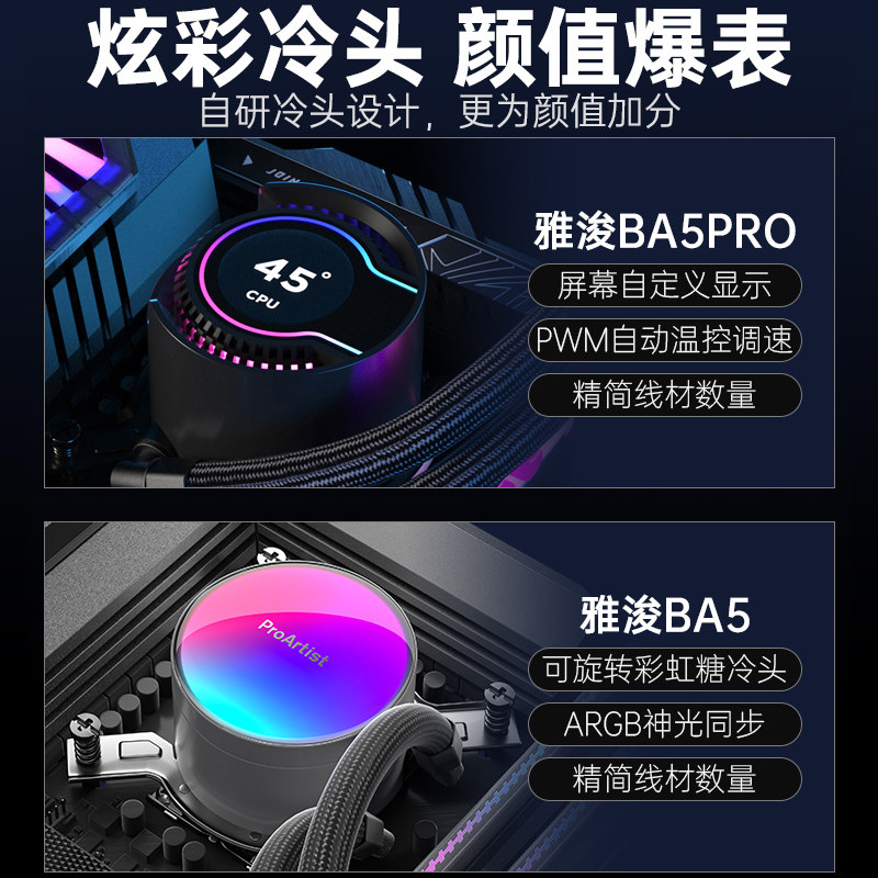 CPU散热器 电脑静音风扇数显屏幕一体式 雅浚UA240水冷360 ARGB台式
