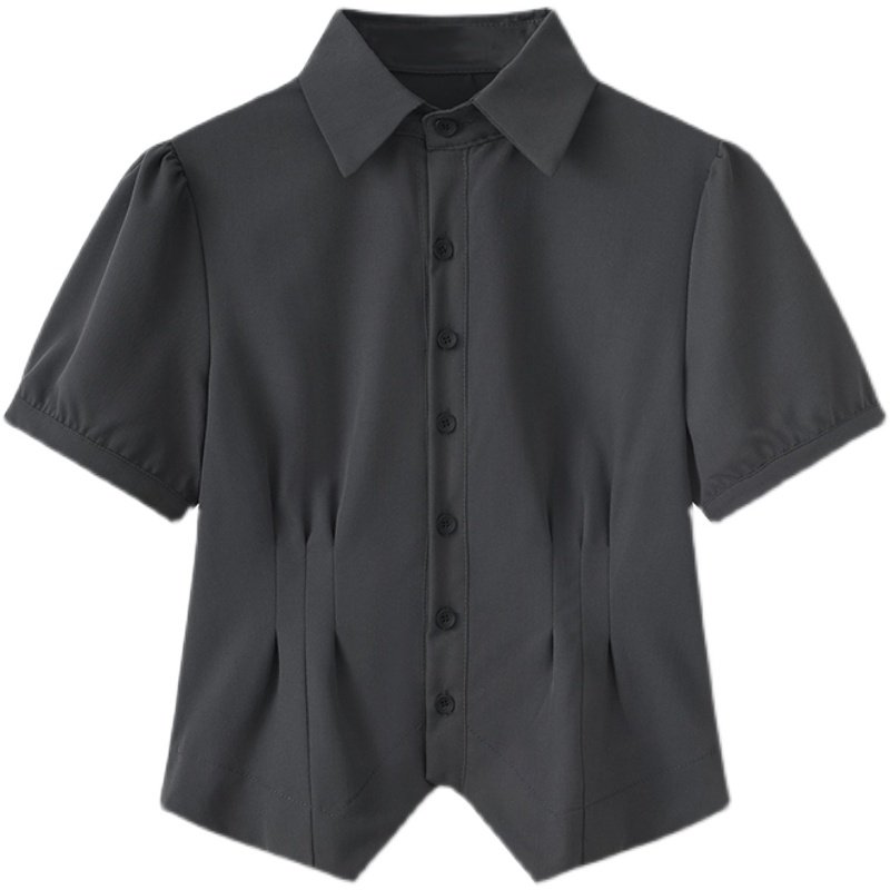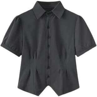 棉质翻领通勤上衣2025冬季 女短款 Eland衣恋衬衫 新款 小蛮腰
