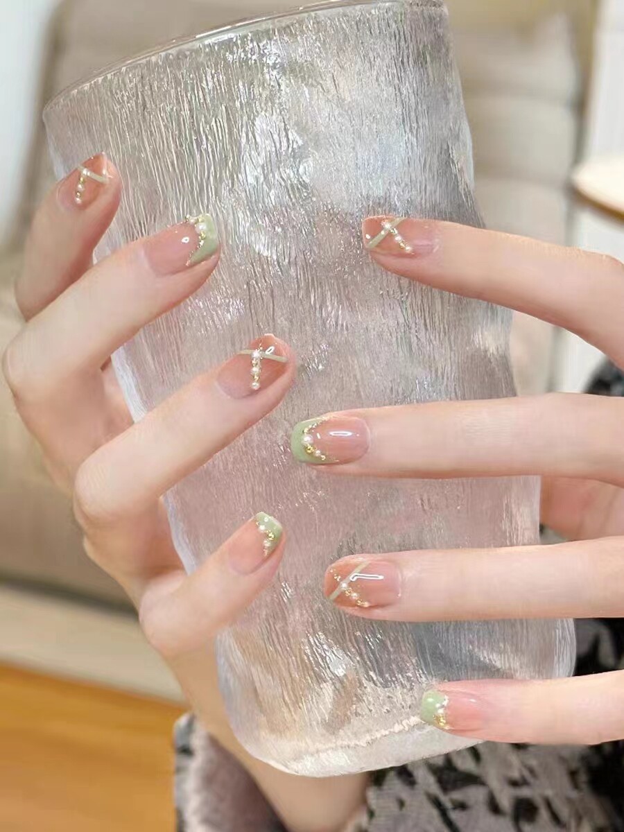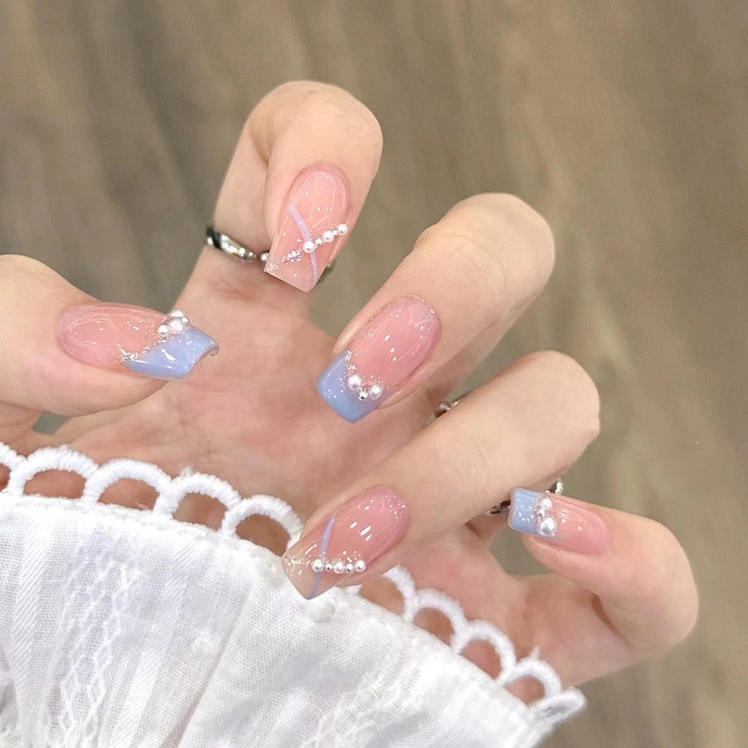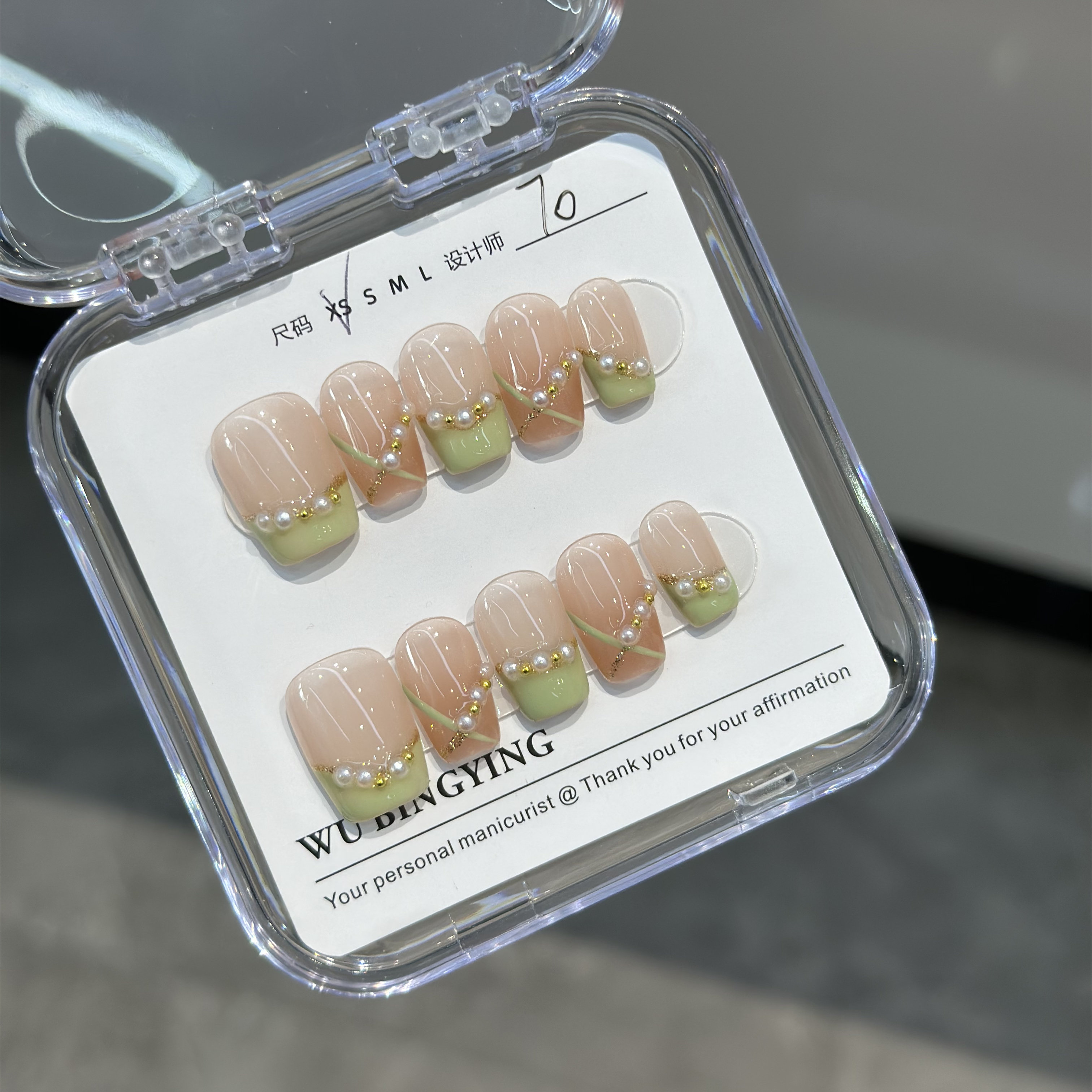 173手工定制穿戴假指甲贴片显白成品西柚渐变可拆卸学生孕妇甲片