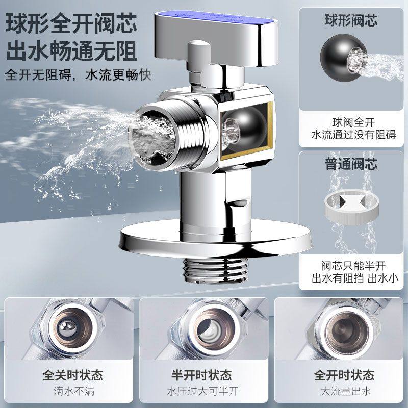 全铜三角阀4分冷热水止水阀门家用304不锈钢热水器马桶开关通用