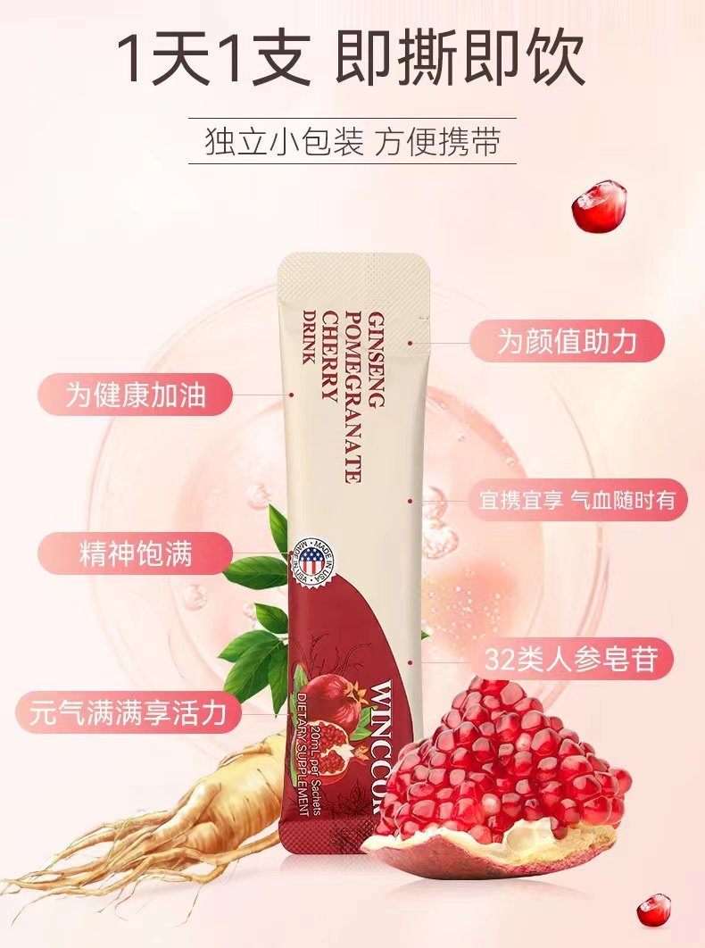 维森元 人参石榴饮红润提肤色好气血足肌肤更年轻口服液美国进口