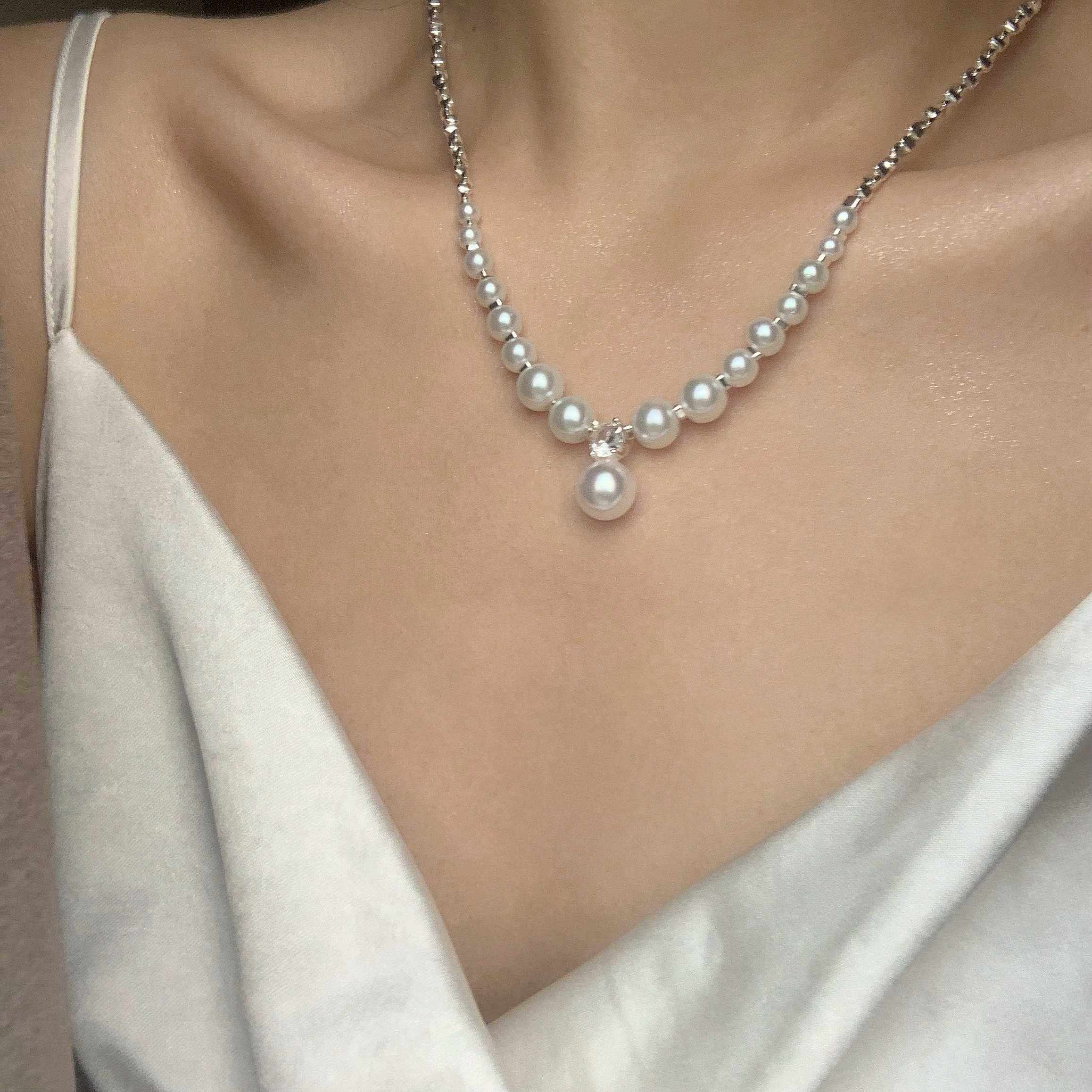 可调节仿珍珠项链2025新款 轻奢小众抽拉锁骨链女高级感毛衣链 爆款