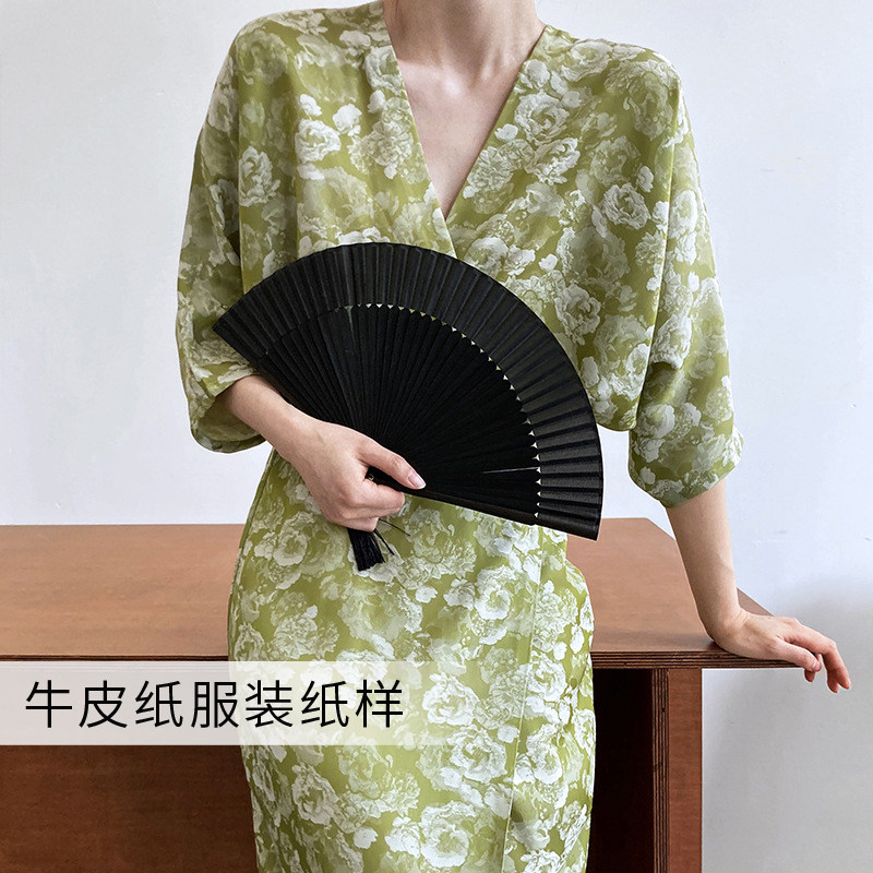 新款 桃心领大摆礼服纸样 重缎荷花连衣裙加工定制图 中袖 NS347夏季