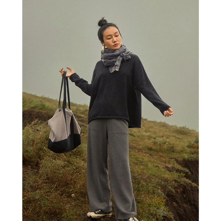 简约 Say 慵懒宽松大落肩纯色羊绒套头衫 幻 小中领
