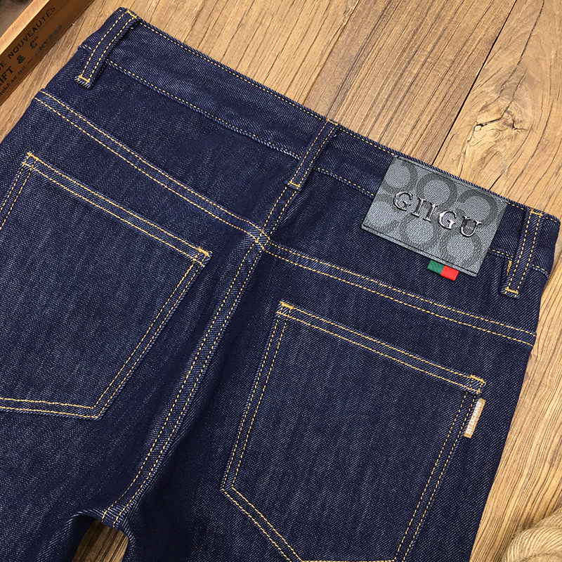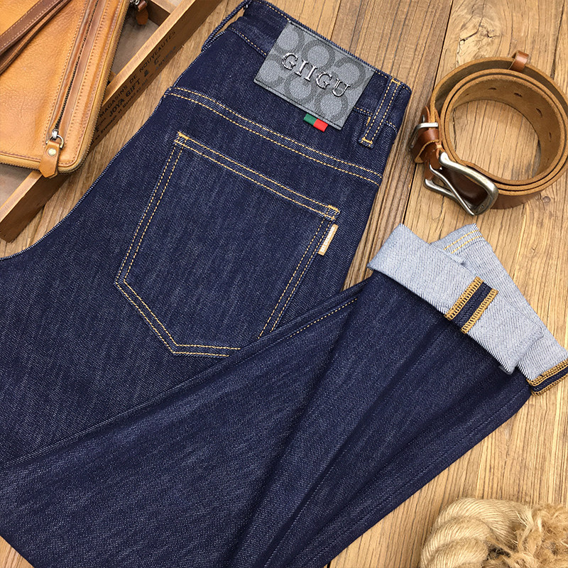 高腰提档修身 冬季 裤 子美式 白色加绒微喇牛仔裤 高街显瘦弯刀裤 男款