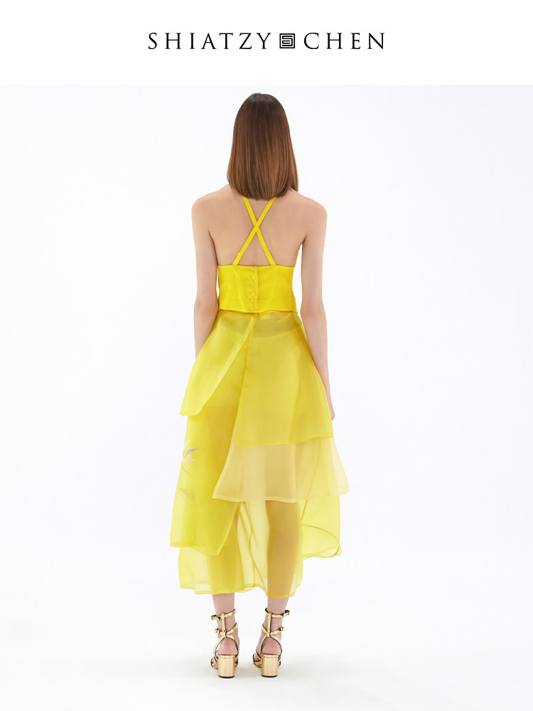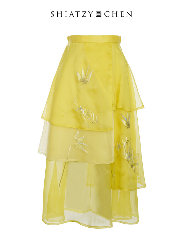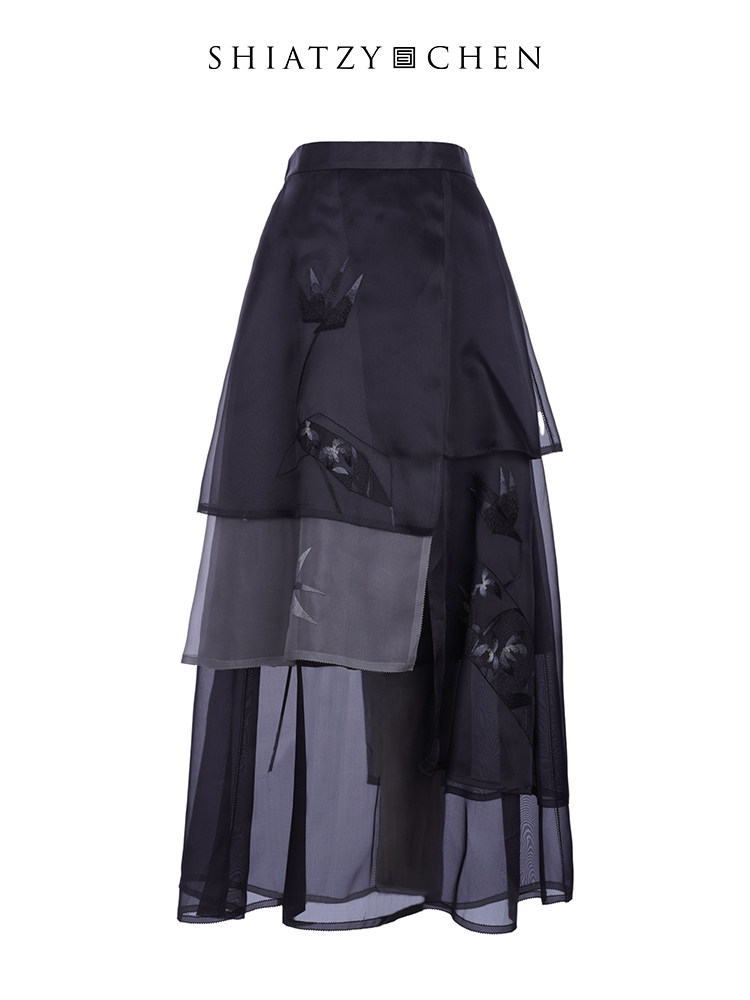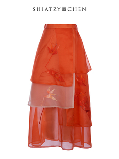 SHIATZY 夏姿·陈中国风色彩拼接乌干纱半身裙138122 CHEN
