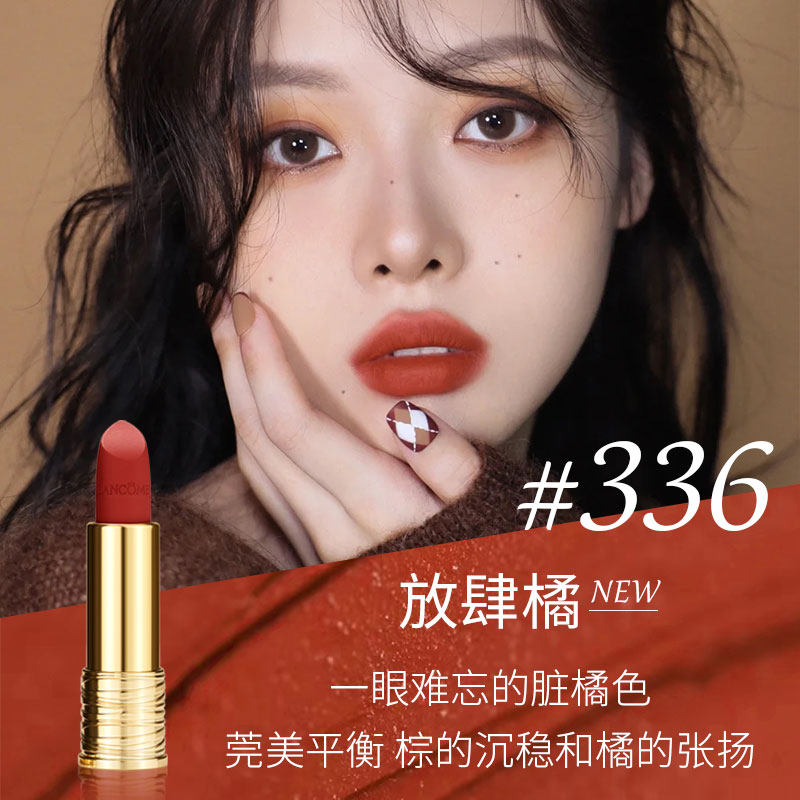LANCOME兰蔻菁纯口红196 336黑管粉金管小蛮腰哑光柔雾唇膏 200