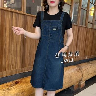 减龄假两件牛仔背带裙女宽松显瘦中长款 时尚 休闲连衣裙子 新款 夏季