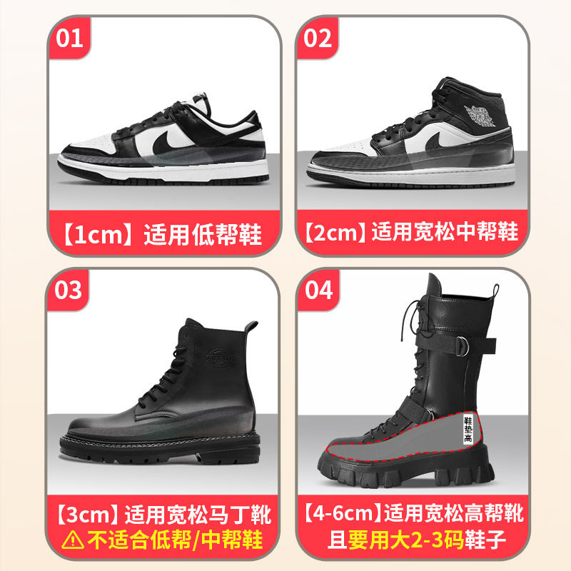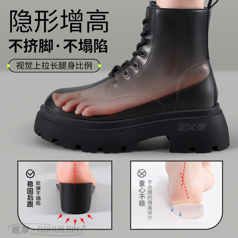 隐形不累脚马丁靴1cm 足弓支撑boost爆米花内增高女款 增高鞋 垫男款