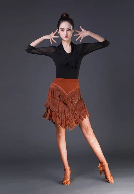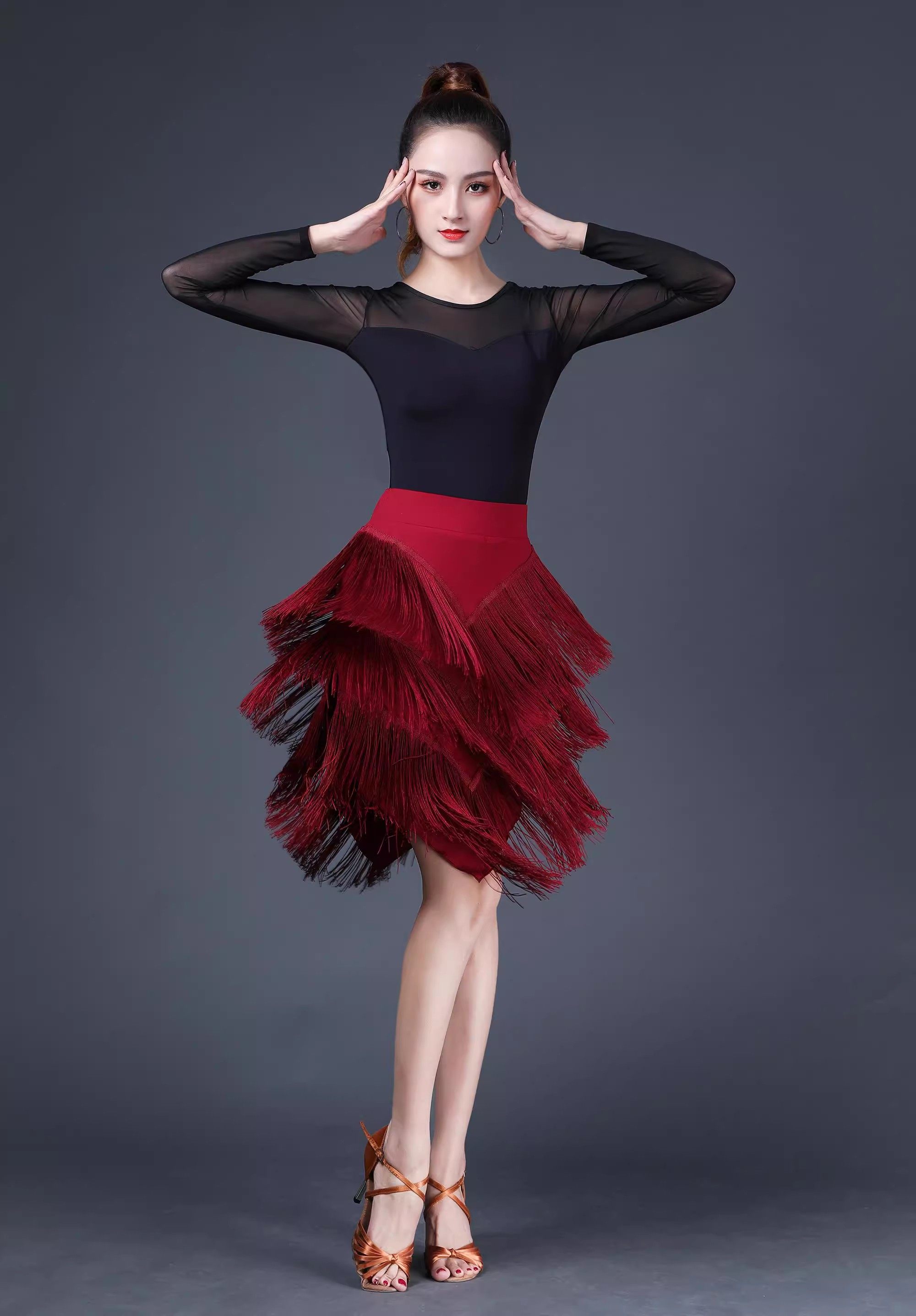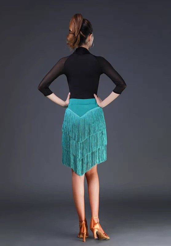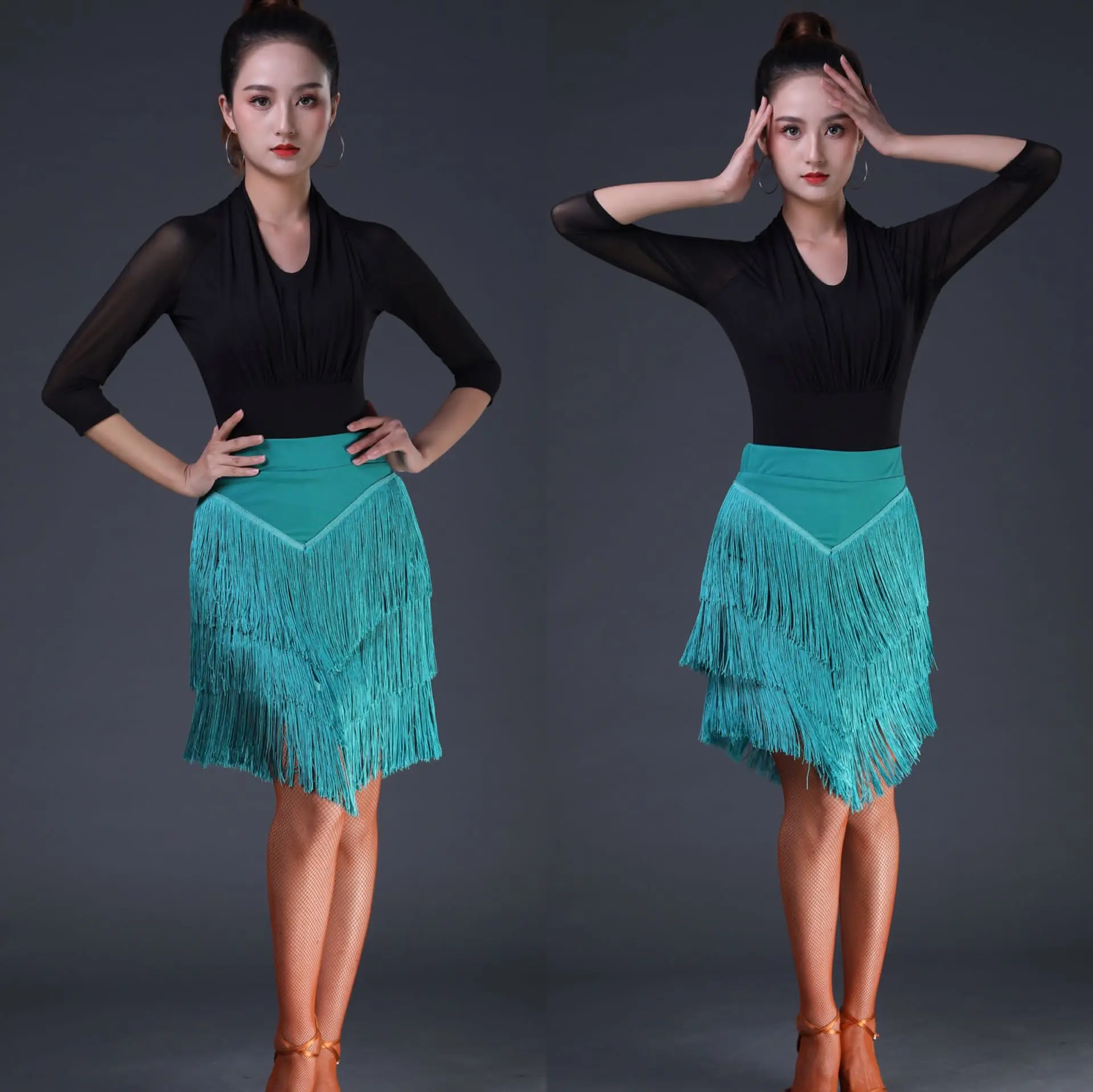 比赛舞蹈演出服装 女成年人半身裙流苏裙下装 练功服装 拉丁舞裙新款