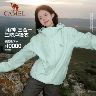 骆驼户外谷子黄色冲锋衣女款 三合一外套男三防防风防水旅游登山服