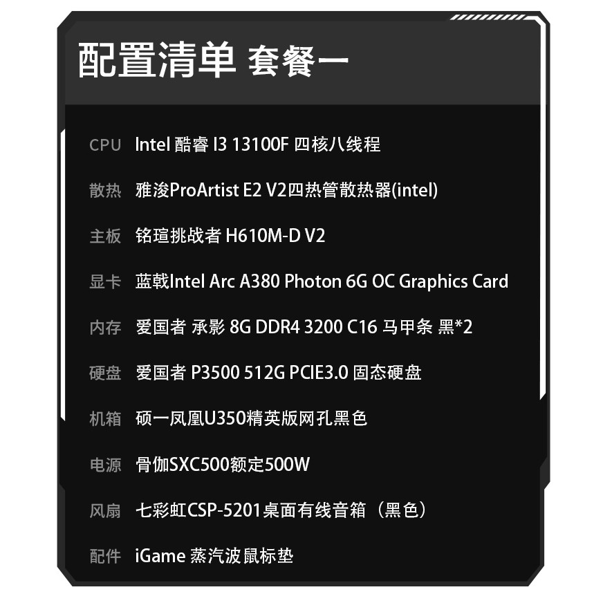 13100F 主机 A380黑色机箱游戏生产力电脑DIY台式