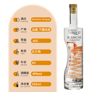 法国雅文邑原瓶进口白兰地塔西克酒园冰白46%VOL高度洋酒500ML