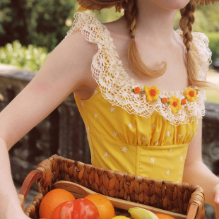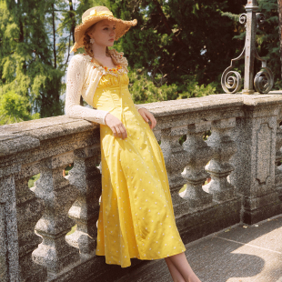 田园风黄色吊带长裙蕾丝少女感通勤连衣裙女 法式 LaceMade 小橙子