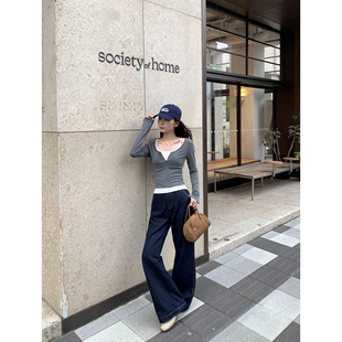 长袖 两件套修身 T恤女设计感叠穿针织正肩上衣 叠穿公式 pusumede
