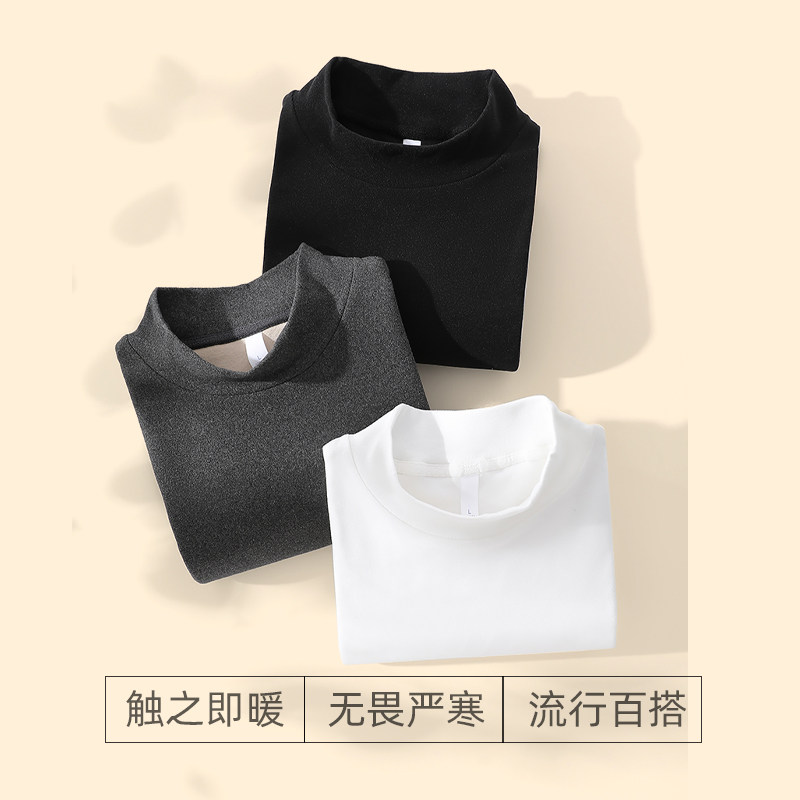 丽丽姐专享 纯色经典 半高领打底衫 新款 男女简约款 保暖绒秋季