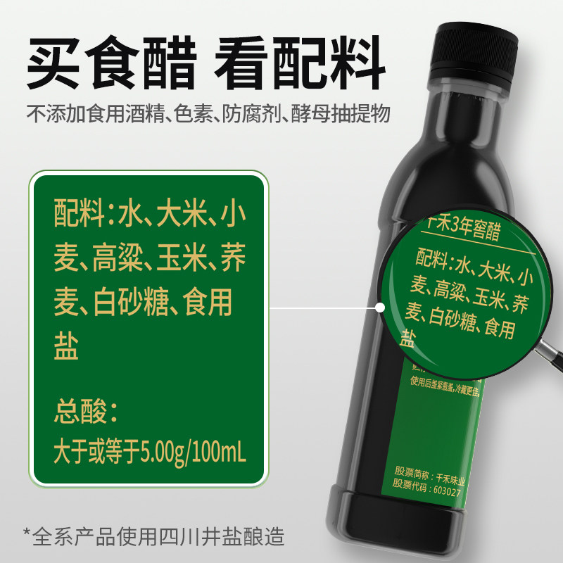 千禾零添加3年窖醋106ml家用食用醋小瓶宿舍调料粮食酿造调味品