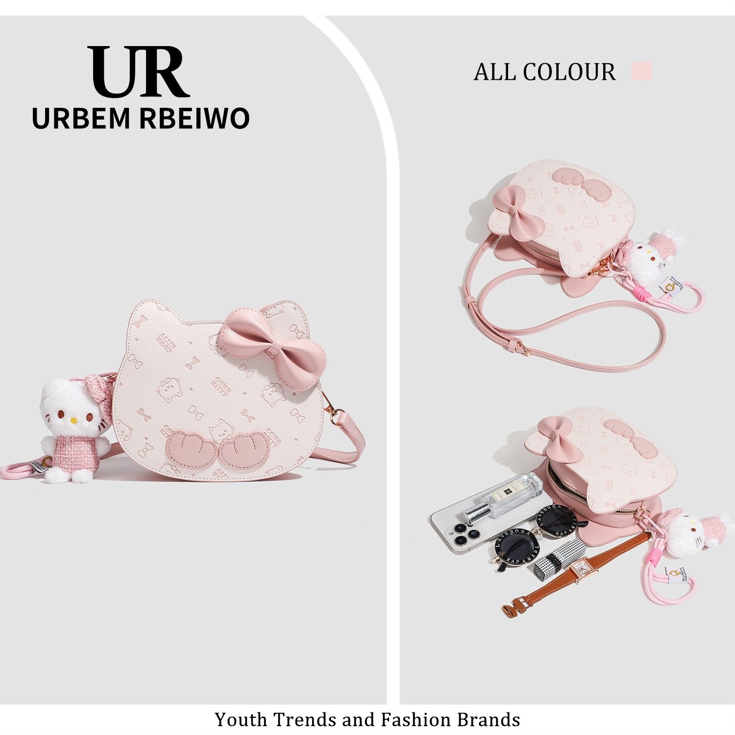 UR包包女送礼物粉色多巴胺kitty猫马鞍包夹心饼干包蝴蝶结单肩包